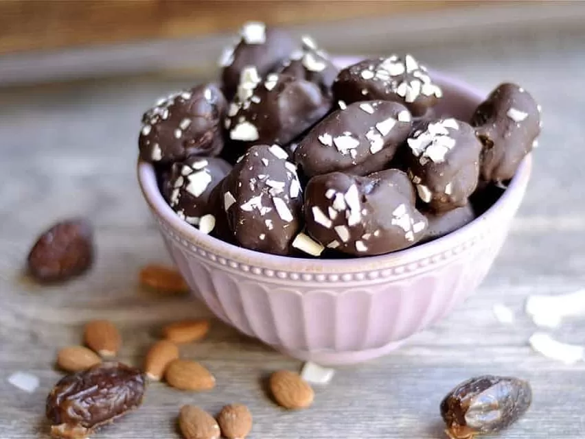 - Celupkan kurma ke dalam dark chocolate hingga seluruh permukaannya tertutup rata.